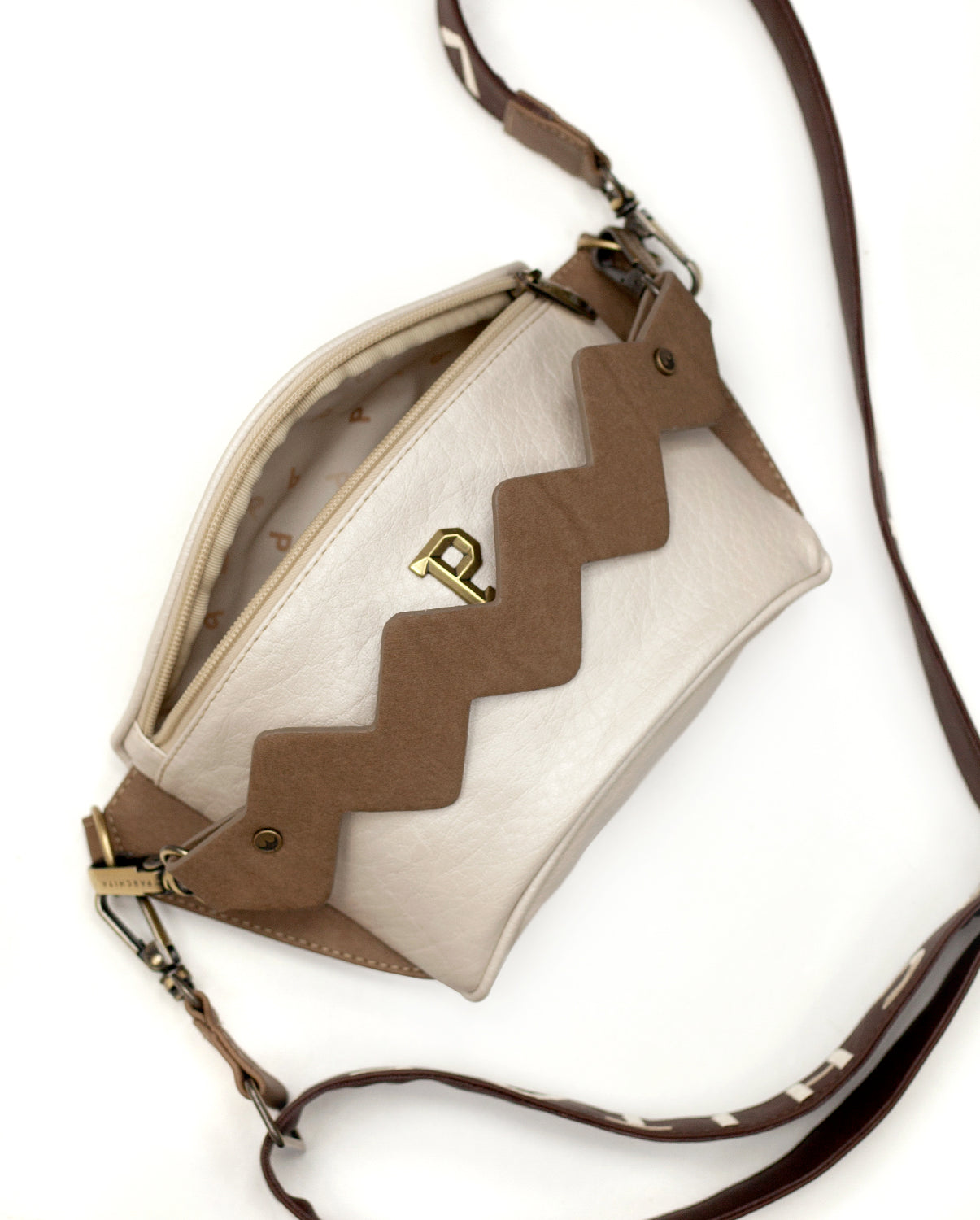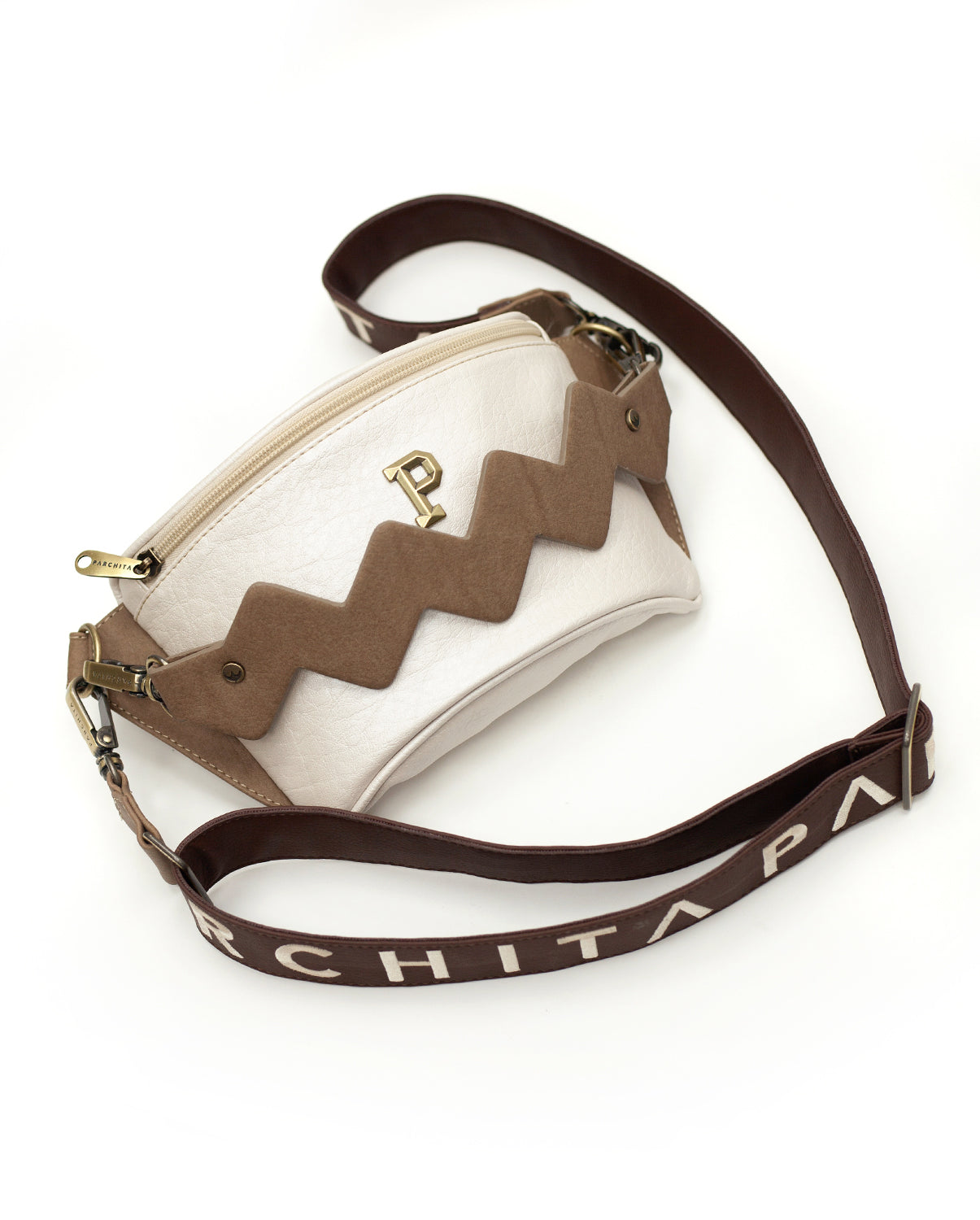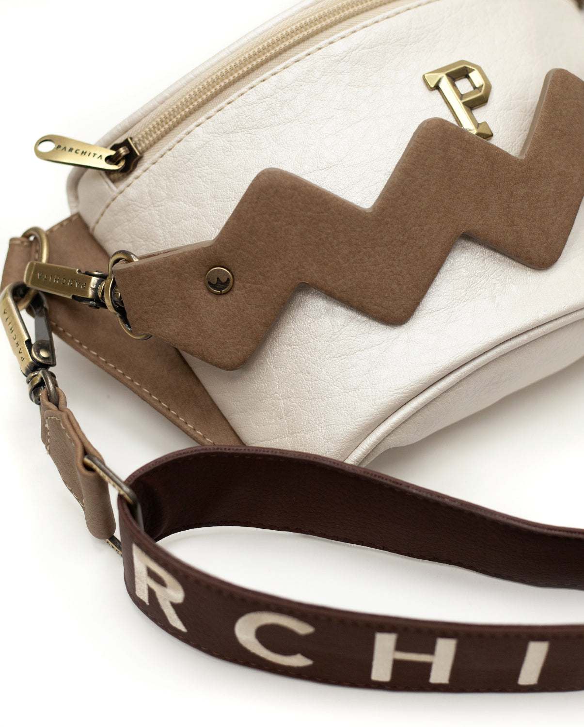 Strap with Embroidered Patch, Back pocket, front lightning, Frontal Wolf Embroidery, Gold P Lobo hardware